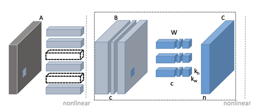 Channel Pruning 的演算法是從各個卷積層之中選出比較重要的 Filter,這個壓縮器實現了 He et al. [3] 在 2017 年提出的方法,先用 LASSO 計算出各個 Channel 的重要性,在最小化壓縮前後的 feature map 的重建誤差的條件下依序選擇要保留的 filter。